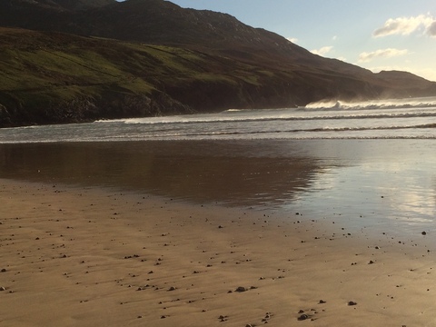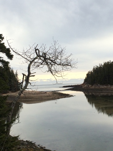 You want to walk all the way out to the waves that are breaking just where the water enters the bay, a deep channel of swift-flowing tide, in and out. You long to go there to the breakers. Something about it beckons. Firm sand left bare by the low tidal waters, ripples in the sand, like the Sahara Desert, a flatland of sand. Always with mirrors of shallows reflecting the sun and clouds. Like a mirage it is. Every time you go down there during low tide, through the grasses, the long grasses like troll’s hair, and down the trail between the cliffs, you see the sand all barren, and those waves in the far distance breaking, beckoning.